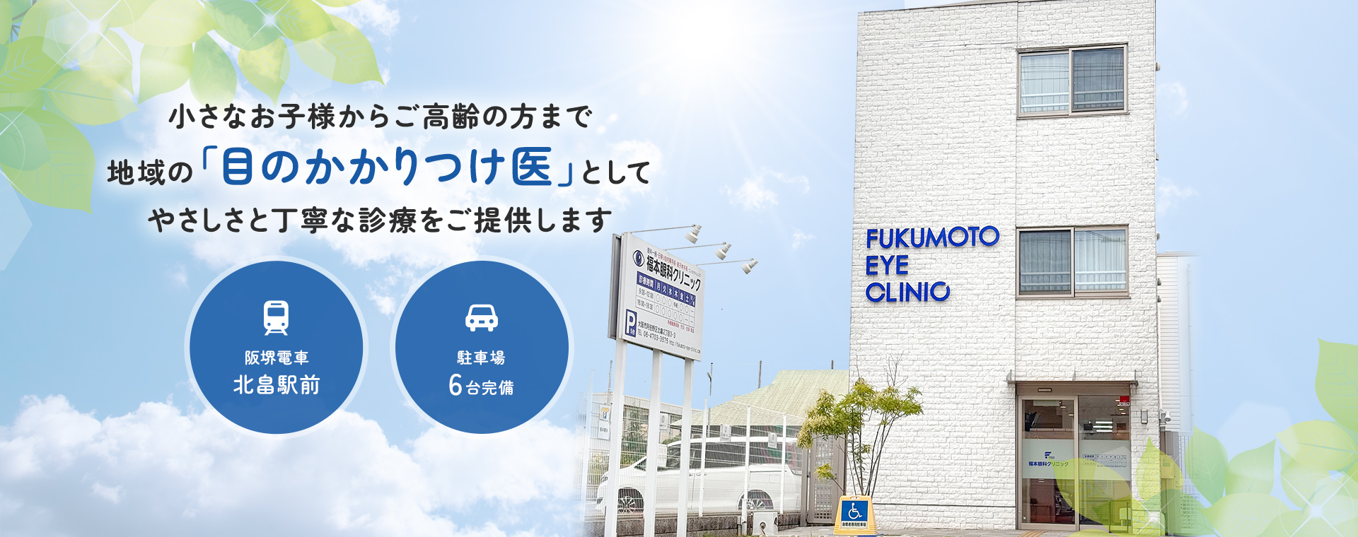 大阪市阿倍野区北畠の福本眼科クリニックは、地域の皆さまの「目のかかりつけ医」として、これまで長年にわたり信頼と安心の眼科医療を提供してまいりました。